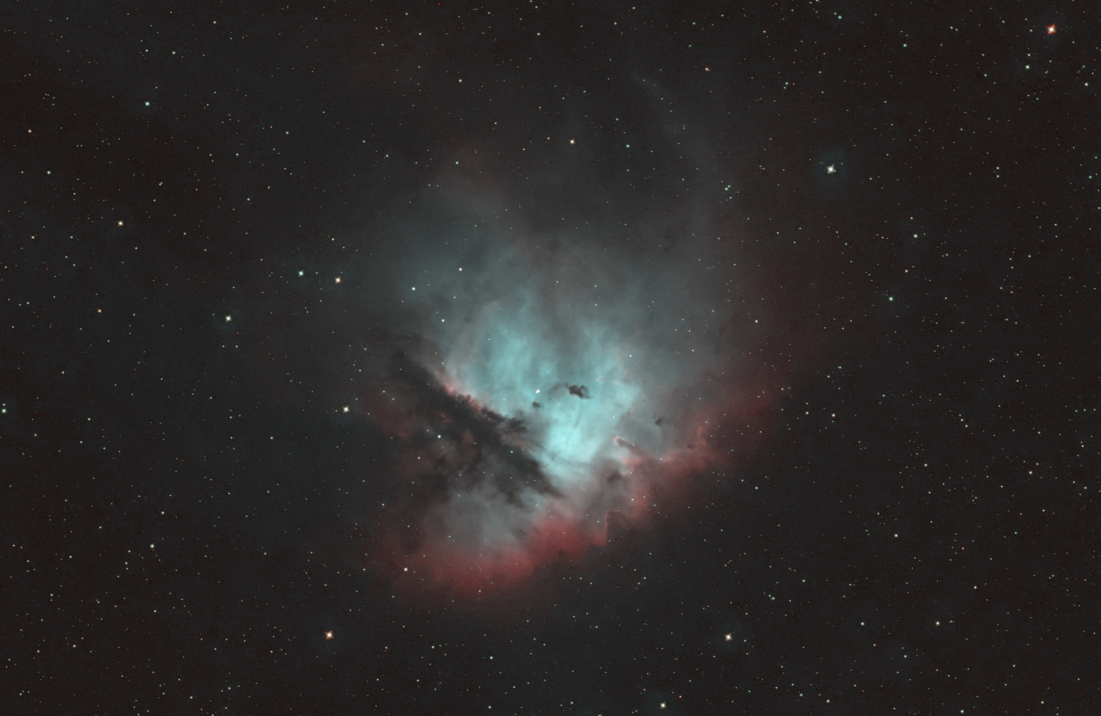 NGC 281 ist ein Emissionsnebel im Sternbild Kassiopeia am Nordsternhimmel. Er ist etwa 9500 Lichtjahre von der Erde entfernt ist. Der Nebel wird umgangssprachlich wegen seiner Ähnlichkeit mit der bekannten gleichnamigen Videospiel-Hauptfigur vor allem im englischen Sprachraum auch als Pac-Man-Nebel bezeichnet. In NGC 281 ist der offene Sternhaufen IC 1590 eingebettet, dessen Sterne um das Zentrum des Nebels verstreut sind und von denen einige durch ihre Röntgenstrahlung hervortreten. Das hellste Mitglied von IC 1590 ist die ionisierende Quelle des Nebels. Der Nebel enthält auch mehrere Bok-Globulen, in denen durch Infrarotaufnahmen Anzeichen für Sternentstehung festgestellt werden konnten.